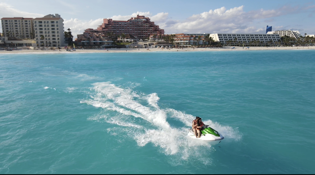 Todo muy romántico… hasta que partimos. Javier se aferró como si estuviera en una escena de acción, mientras Vanessa disfrutaba la velocidad. Claramente terminó en una gran caída, un recuerdo inolvidable, con sal en el pelo y el corazón acelerado.